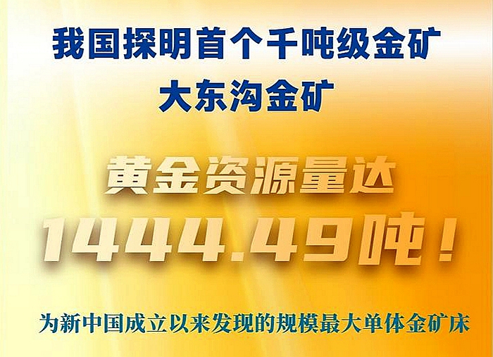 自然资源部11月14日宣布 辽宁省成功探明国内首个千吨级、低品位超大型金矿床——大东沟金矿 探明金矿石量25.86亿吨 黄金资源量1444.49吨 平均品位0.56克/吨 为新中国成...