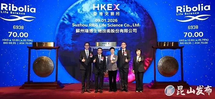 今天上午9:30,铿锵锣声敲响了昆山新年“开门红”。 苏州瑞博生物技术股份有限公司成功在香港联合交易所主板挂牌上市,成为今年江苏首家上市企业。 至此,昆山累计境内外上市企业达51家,继续以领跑...